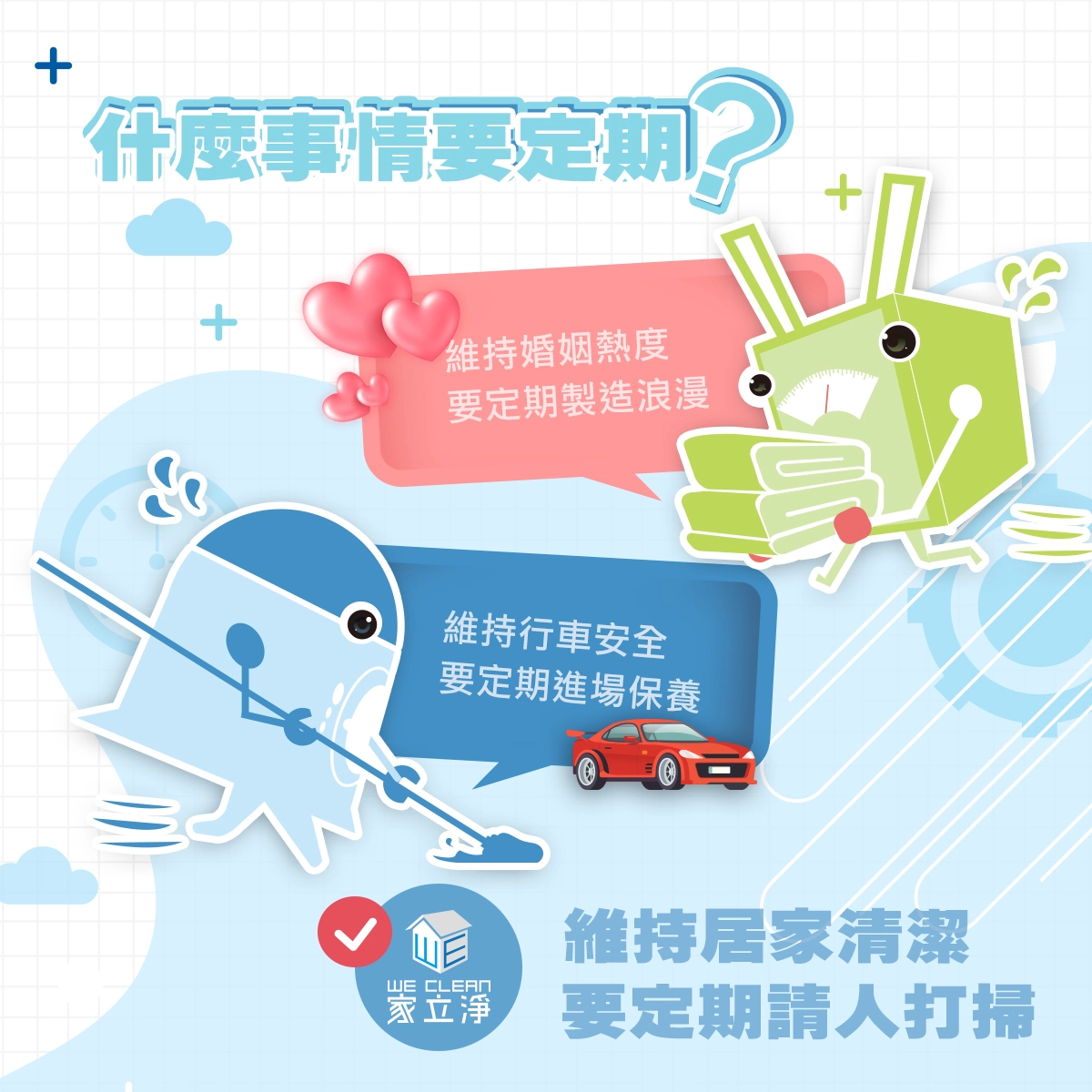 ->維持居家清潔,要定期請人打掃